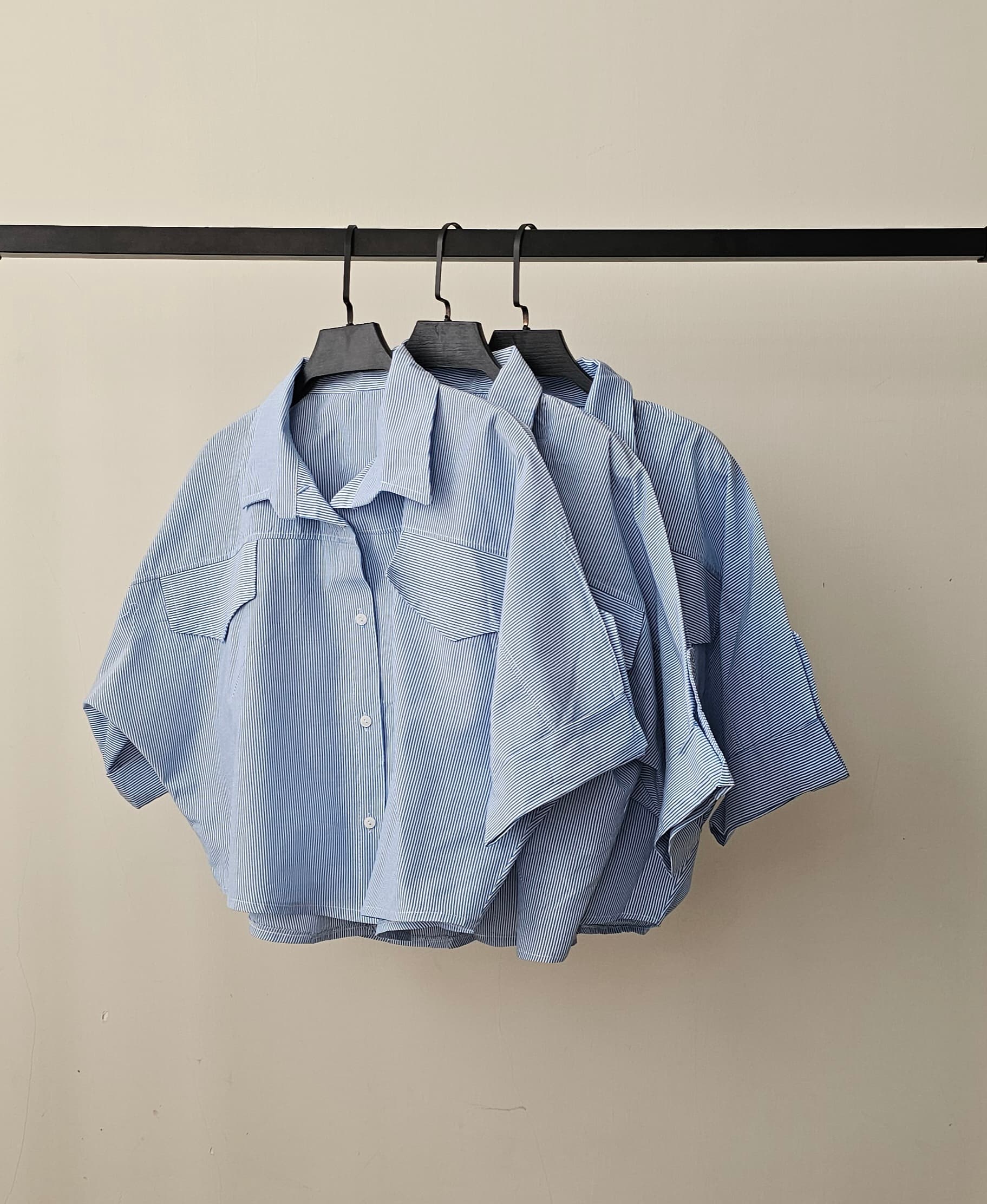 ناموجودشومیز دیپلمات راه راه آبی باکسی کوتاه زنانه کد 237