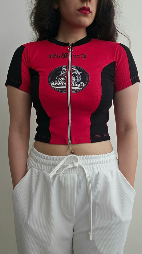 کراپ اسپرت زنانه مدل دو زیپ کد ۰۰۶