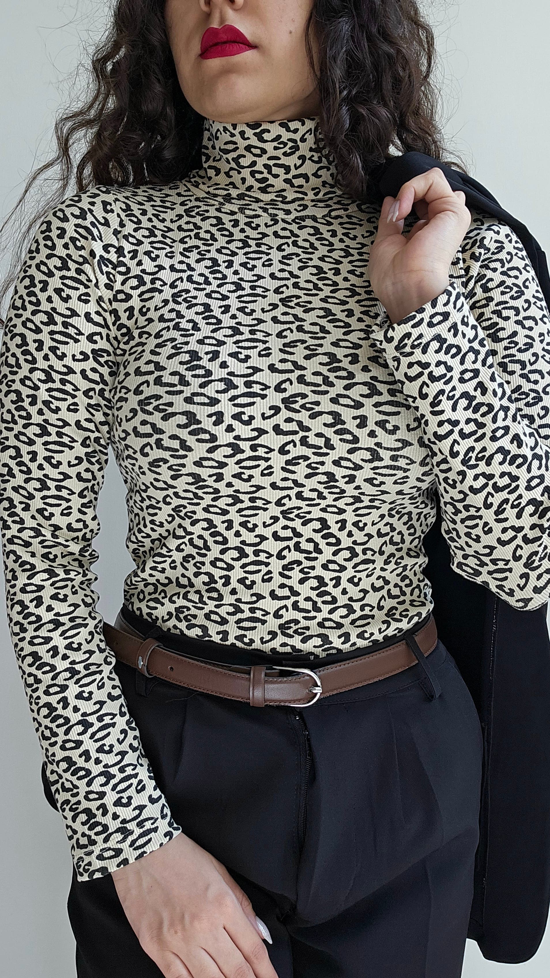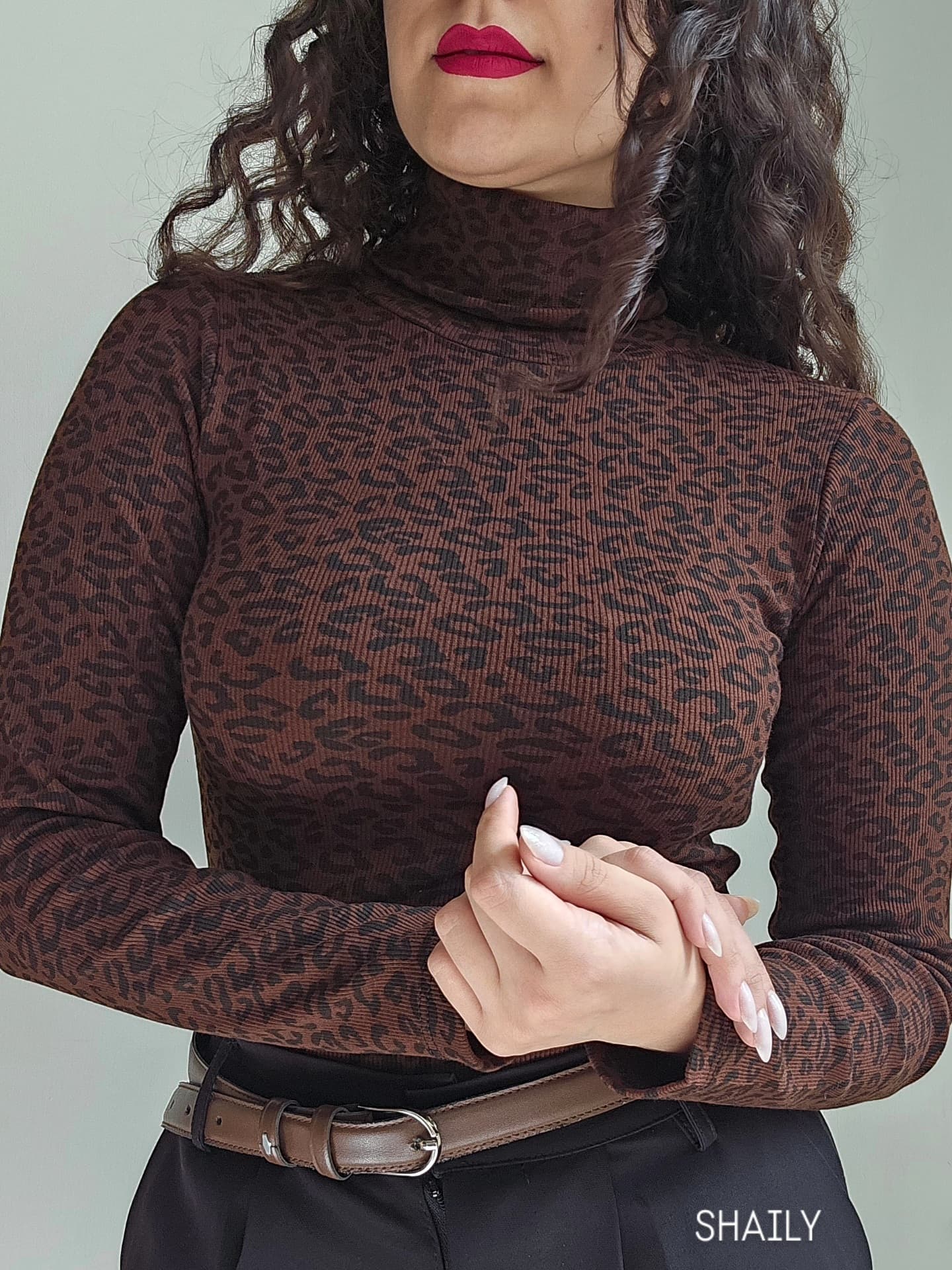 🎀 بلوز یقه اسکی پلنگی زنانه