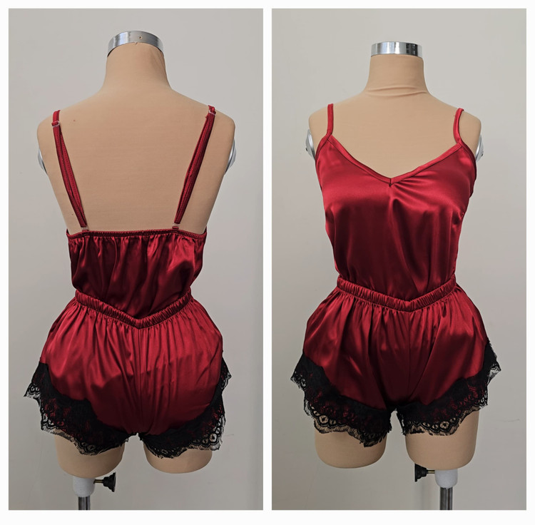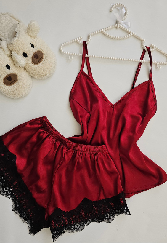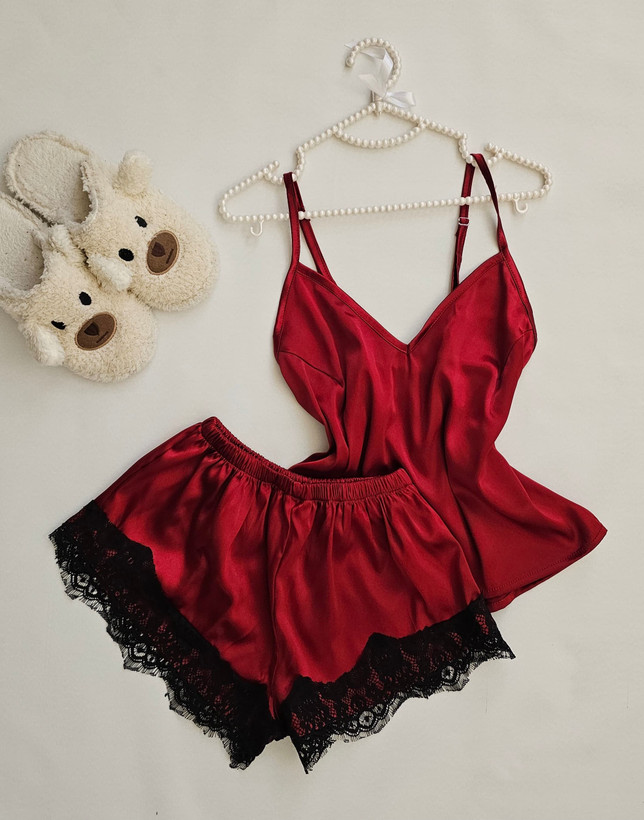 🍓🍒 ست خواب دو تیکه زنانه زرشکی
