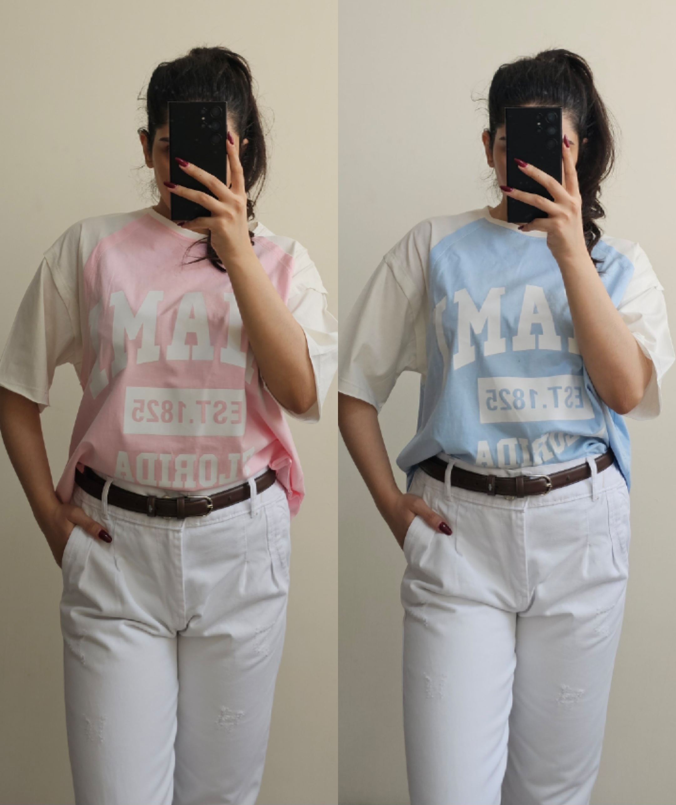 🎀جزئیات ویدیو لباس داخل پیج شایلی شاپ موجود میباشد🎀 ✔️تیشرت اسپرت باکسی مدل میامی ✔️پارچه 100 درصد پنبه درجه یک 👌 ✔️چاپ ضمانتی ✔️مناسب 34_44 ✔️عرض سینه : 61cm ✔️قد تیشرت : 54cm