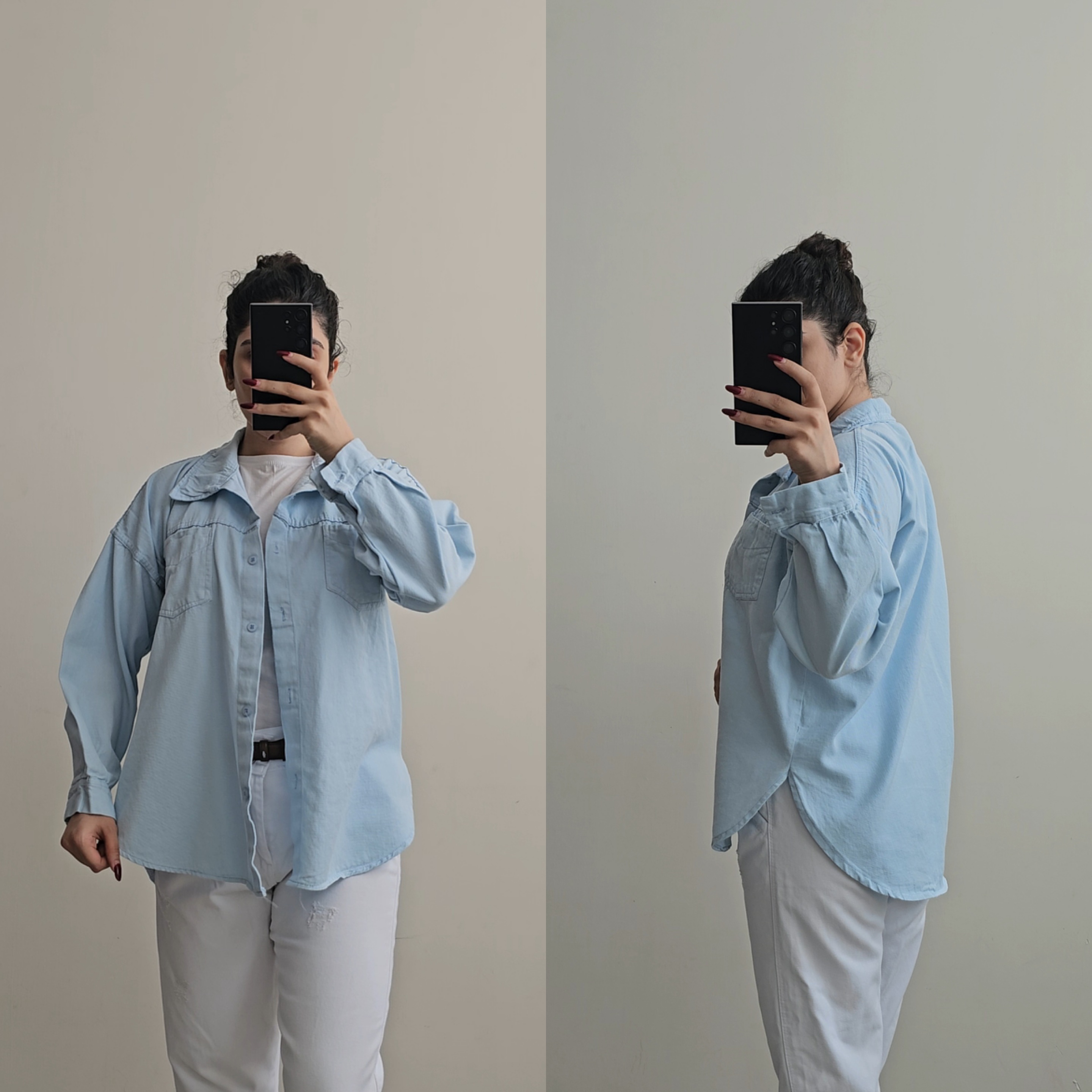 🎀 شومیز باکسی دو جیب پنج دکمه