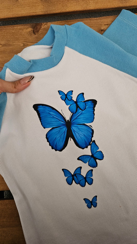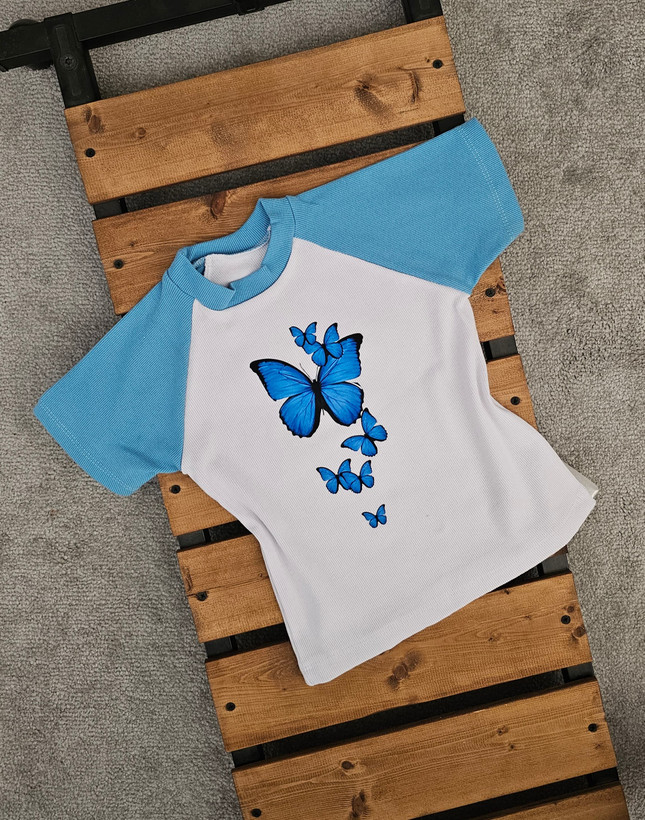 🦋 کراپ فانتزی دخترانه دو رنگ پروانه آبی