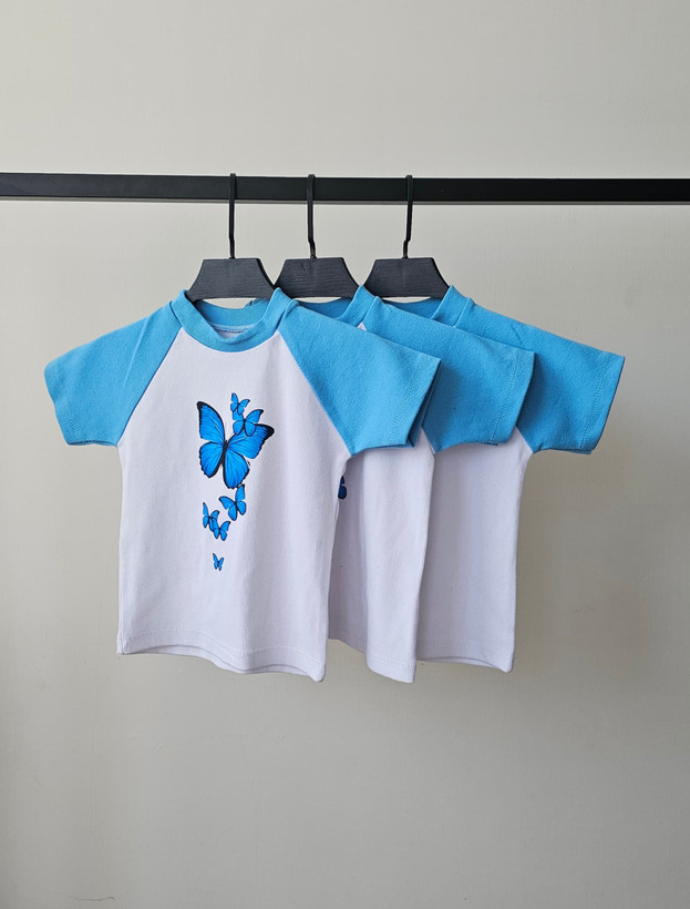 کراپ فانتزی دخترانه مدل پروانه آبی: پارچه ۱۰۰ درصد پنبه 👌