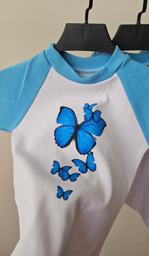 🦋 کراپ فانتزی دخترانه دو رنگ پروانه آبی
