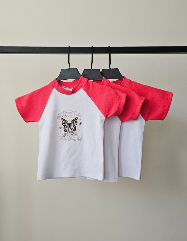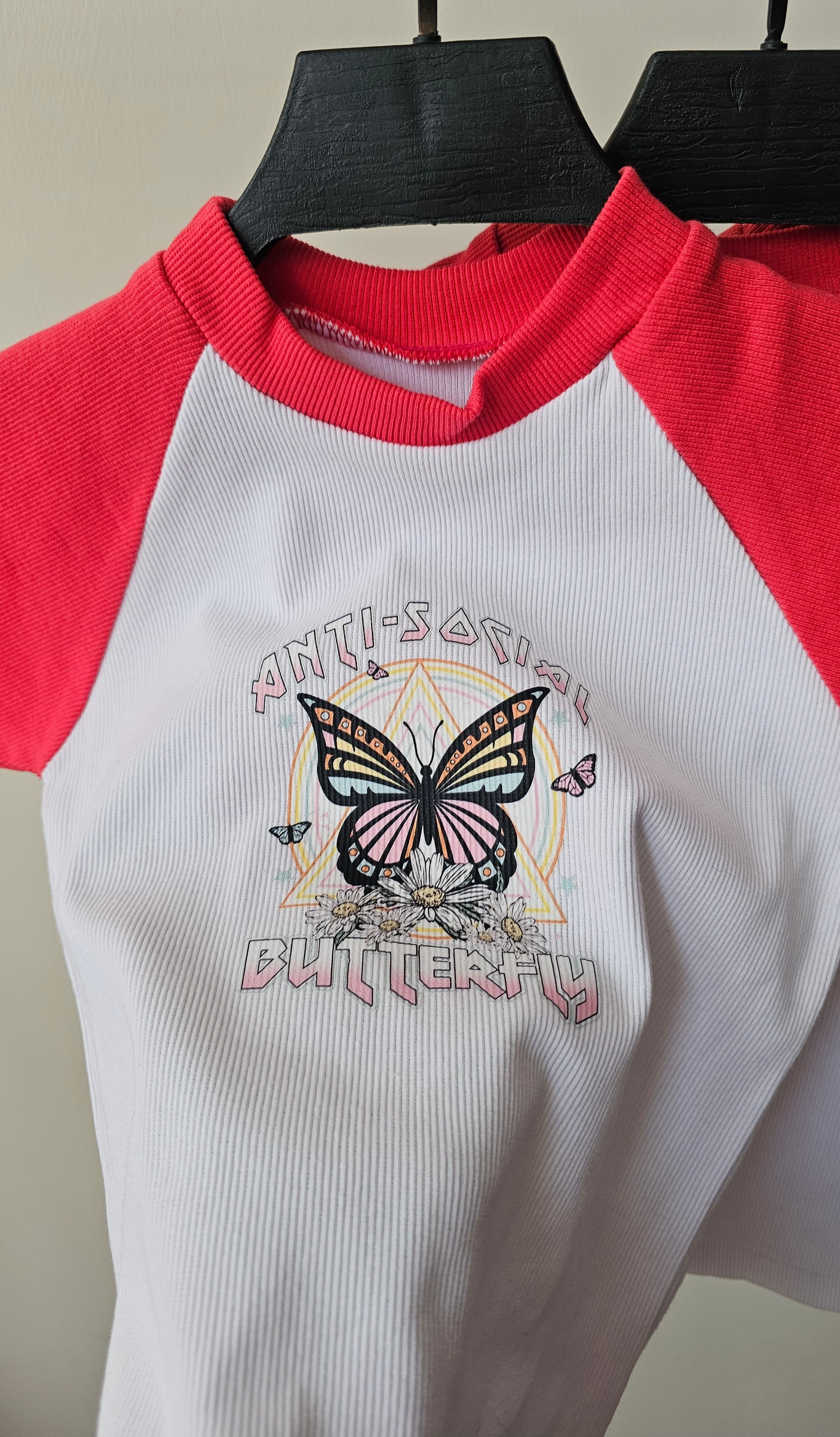 کراپ فانتزی دخترانه دو رنگ پروانه صورتی: پارچه صددرصد پنبه